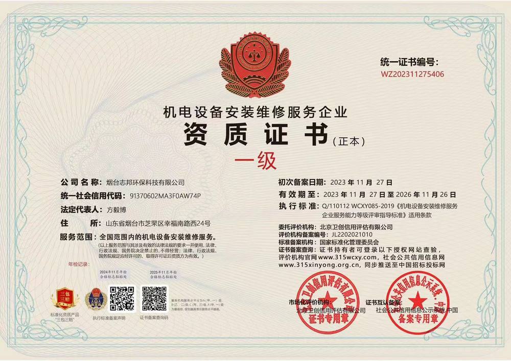 機(jī)電設(shè)備安裝維修服務(wù)企業(yè)資質(zhì)證書 一級
